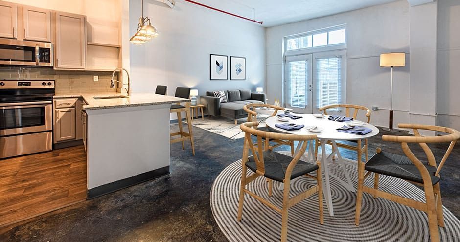 Listed on the National Register of Historic Places, Bass Lofts reimagines a 1920s junior high school into studio, one-bedroom, and two-bedroom loft apartments filled with character. Soaring ceilings, exposed brick, oversized windows, and preserved architectural details honor the property’s past, while newly renovated interiors bring modern comfort. Our lush seven-acre campus is situated on a hilltop on the cusp of Inman Park and Little Five Points, and just minutes from the Eastside Beltline.