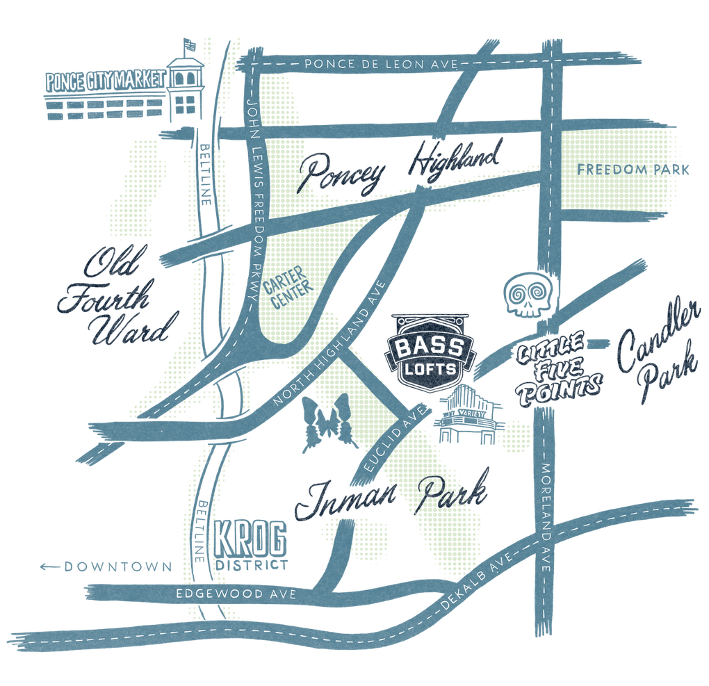 Bass Lofts is uniquely positioned at the intersection of two of Atlanta’s most iconic neighborhoods.